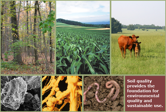 Soils support plant growth, recycle dead material, regulate and filter water flows, support buildings and roads, and provide habitat for many plants and animals. Depending on the land use, many of these functions occur simultaneously. Soil quality assessments go beyond measuring degradation (erosion, compaction, or contamination) to focus on these soil functions and the processes that create them. Go to Soil Functions for more information.